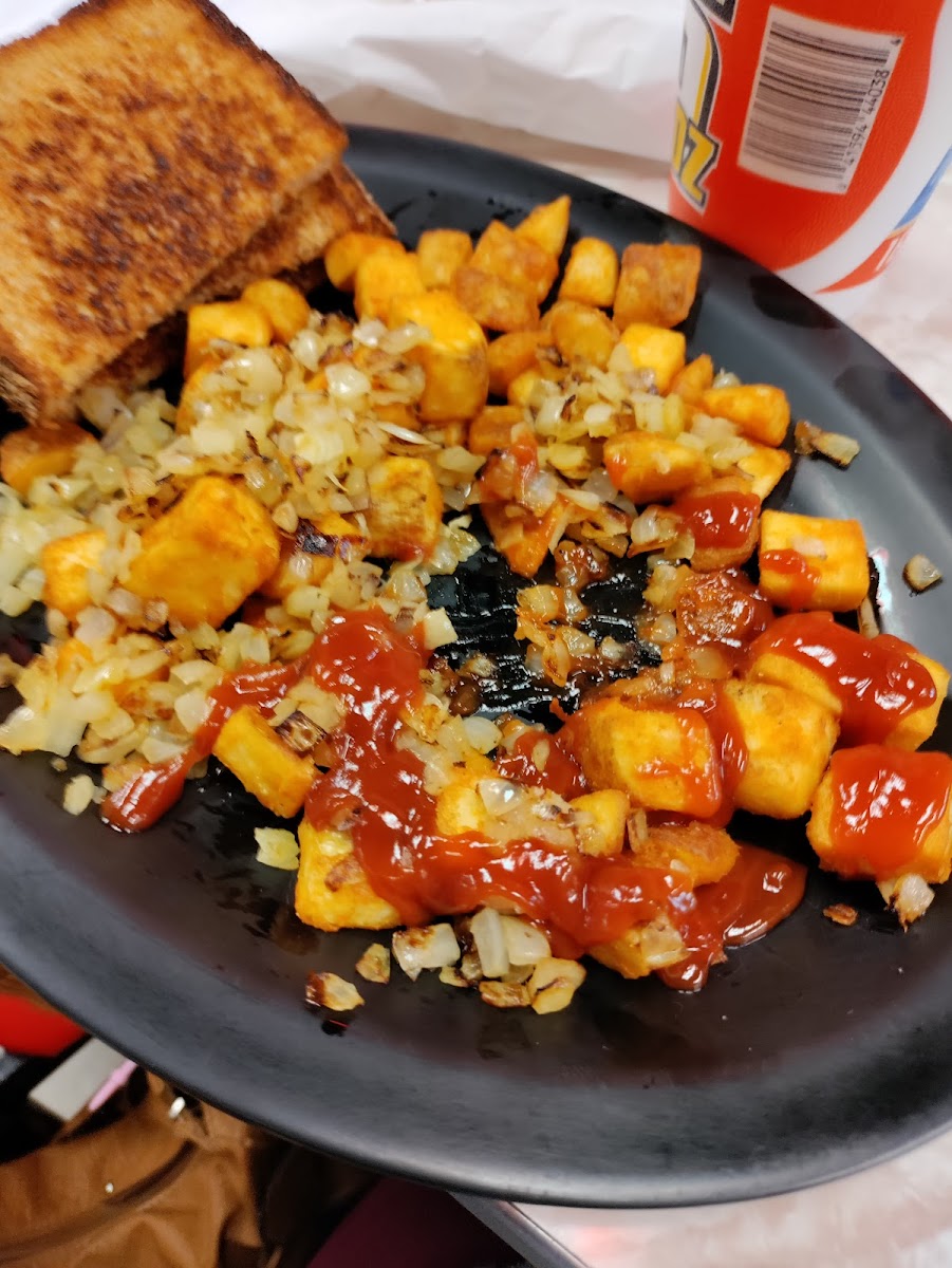 French toast is a standout item, cooked to golden perfection and served warm. The soft texture and rich flavor make it a comforting choice for starting the day.